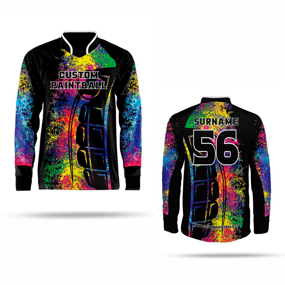 Farbgranate Trikot bestellen: Hol dir das Farbgranate Paintball Jersey: bunter Farbsplash, personalisierbar mit Name und Logo, jetzt bestellen!