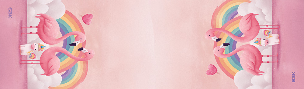 Airsoft Barrel Cover im süßen Pink-Design mit Flamingos und Rainbow-Vibes, passend für breite Guns und auffälliges Gear