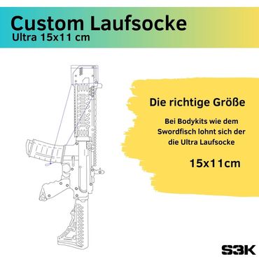 Unsere Custom Paintball Laufsocken bestehen aus robusten, strapazierfähigen Materialien, die selbst den härtesten Bedingungen auf dem Spielfeld standhalten. Sie sind leicht anzubringen und bleiben auch bei intensiven Bewegungen fest am Lauf des Markierers. Die elastischen Enden sorgen dafür, dass die Laufsocke sicher sitzt und nicht verrutscht. Dank ihrer individuellen Gestaltung wird dein Team garantiert auf jedem Turnier oder Spieltag positiv auffallen.