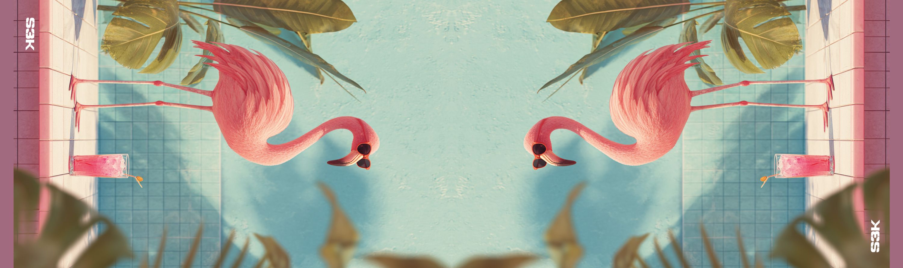 Laufsocke für Airsoft mit Flamingo am Pool, sommerlich und auffällig für individuelle Setups