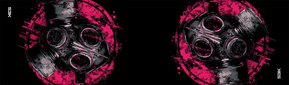 Diese Laufsocke für Paintball geht nicht leise rein. Das Gasmasken-Motiv in Schwarz mit knalligem rot/pink wirkt aggressiv, modern und richtig präsent auf dem Markierer.