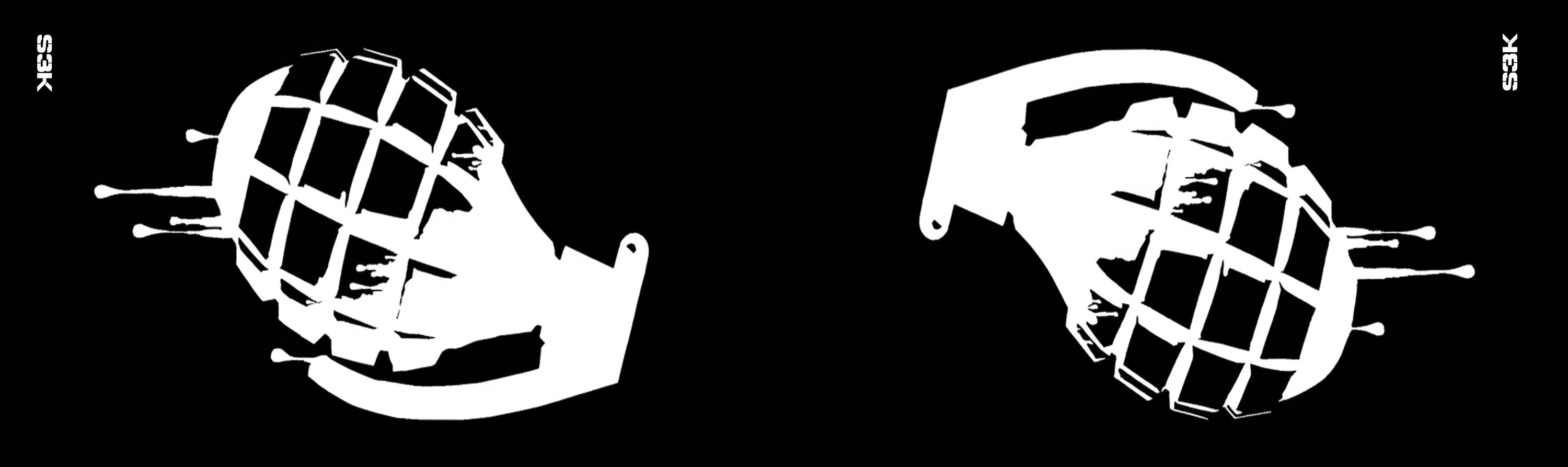 Laufsocke für Paintball mit weißem Granatenmotiv auf schwarzem Hintergrund. 10x16 cm für breite Markierer und ein klarer, harter Look ohne unnötigen Schnickschnack.